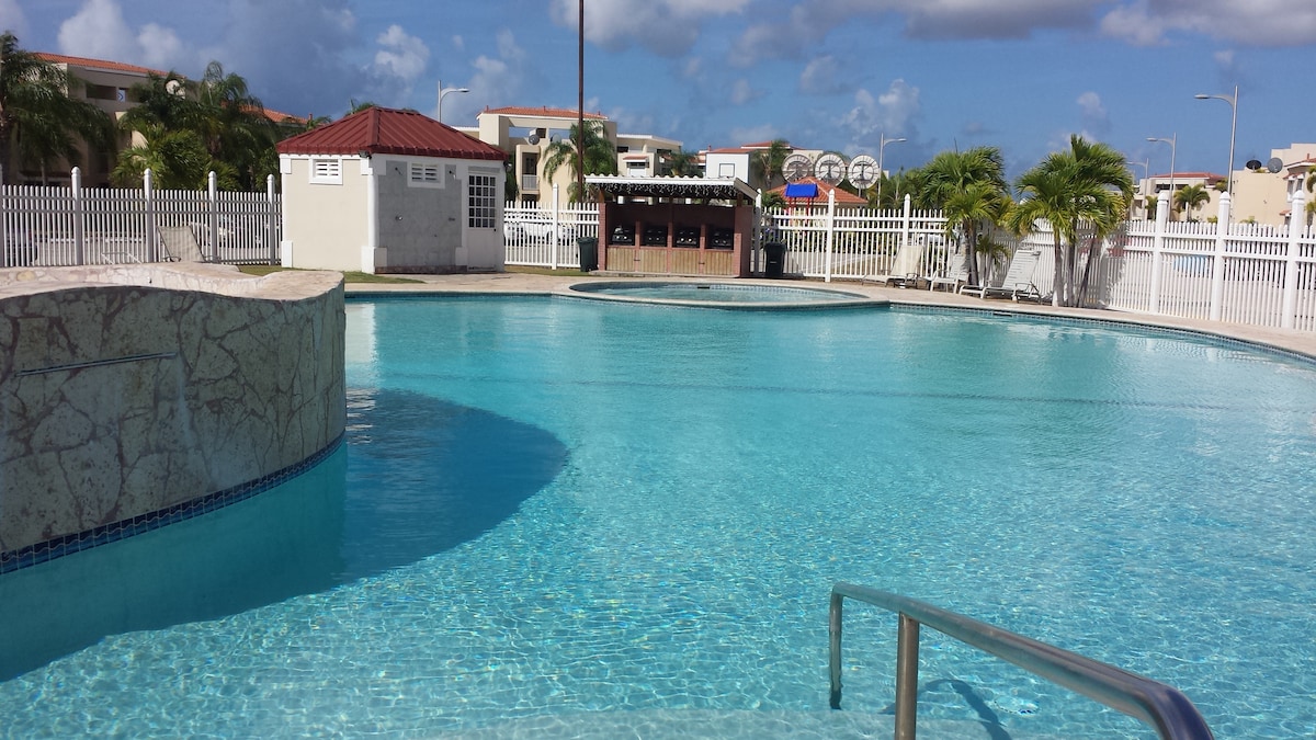 Amplia villa familiar en un centro vacacional de golf cerrado con guardia las 24 horas. La villa tiene terraza privada en la azotea con preciosas vistas a las montañas y al mar Caribe. El centro vacacional cuenta con un campo de golf de campeonato y un restaurante con entrega de comida gratuita a la comunidad. Piscina, parque infantil y cenador justo delante del edificio.