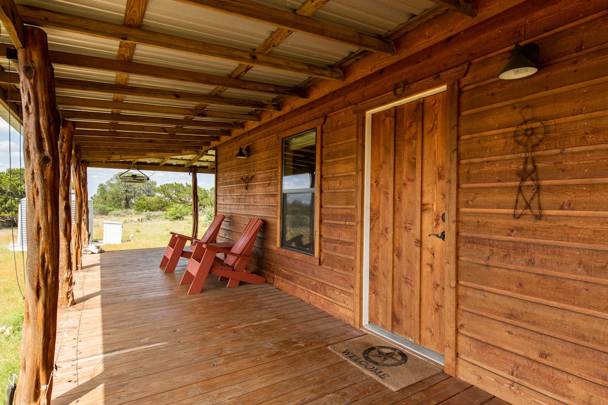 ¡Nuestra cabaña de 5 estrellas es mejor que nunca! Disfruta de días tranquilos, puestas de sol espectaculares y noches llenas de estrellas desde el porche envolvente. Explora las bodegas cercanas, restaurantes, tiendas y parques estatales para disfrutar de actividades recreativas e históricas. La cabaña Sunset está construida con cedro aromático y pino. La cabaña está cómodamente amueblada con una cocina completa, cama tamaño queen, sala de estar y wifi. Deléitate con nuestra agua de lluvia pura y filtrada y nuestra abundante vida silvestre. Situada a una hora de Austin o San Antonio.