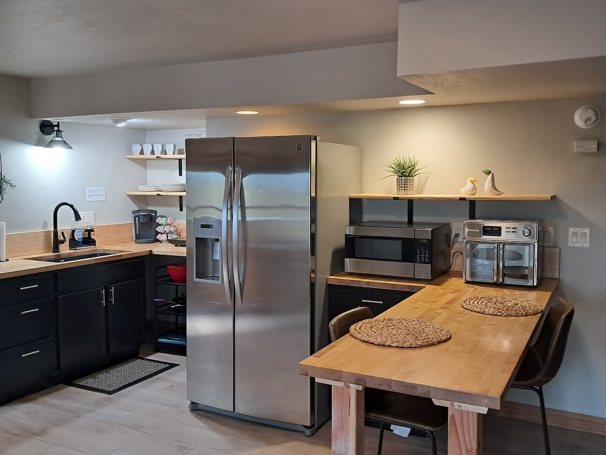 Este elegante estudio de 800 pies cuadrados tiene unas vistas preciosas a las Colinas Negras y está rodeado de bosque nacional. Está a 10 minutos en coche de Rapid City por la pintoresca carretera Rimrock. Hay increíbles caminatas y un mirador panorámico a unos pasos. Hay una entrada privada para salir al nivel inferior en un terreno de 6 acres. El estudio tiene cama tamaño king, baño completo, cocina americana con nevera grande, microondas, horno tostador, cafetera, etc. Hay estacionamiento al aire libre o estacionamiento cubierto disponible en caso de mal tiempo.