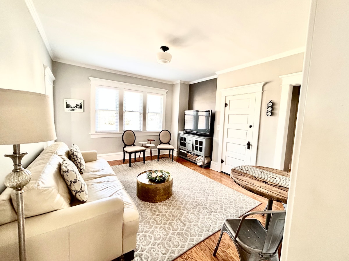 La propiedad reformada ocupa el nivel principal de este edificio histórico de 3 pisos. Aire acondicionado central. ¡El Airbnb es el apartamento 1! Hay otros 3 apartamentos. Muy pintoresco y limpio. La propiedad está detrás del campus de Otterbein y a 1 manzana a pie de los restaurantes y tiendas del centro histórico de Westerville. La ubicación es conveniente para el aeropuerto CMH, hospitales, el embalse Hoover, los parques estatales Alum, los jardines Inniswood, los centros comerciales Easton/Polaris/Outlet y el sendero para bicicletas Ohio/Erie. Cerca de OSU y Top Golf, IKEA y más.