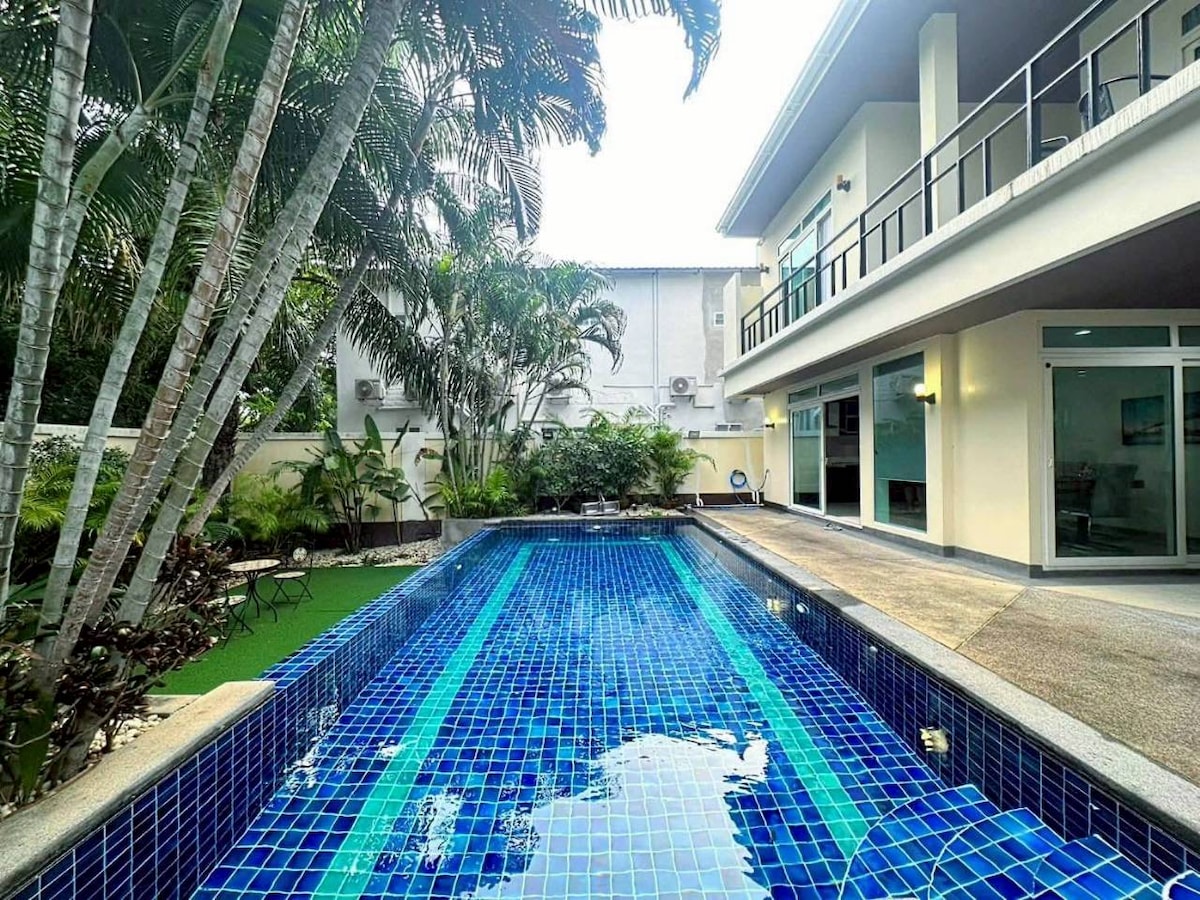 在这座位于市中心4 卧5 卫的私人泳池别墅的房源里, 会让您享受时尚温馨的住宿体验。 周边7-11/Mini BigC超市,餐馆、咖啡店林立,步行3-5分钟即到,生活超级便利, 在此可尝遍泰式美食。 开车10分钟左右直达芭堤雅风月步行街, 海滨路及沙滩;前往中央商场及terminal 21商场非常便利,住在这里,将会给您带来愉快的旅行体验!通过Grab应用程序(Bolt )√轻松搭乘出租车 设施和便利设施: -私人游泳池 -烧烤炉 -全功能厨房 -免费水、电、高速无线网络 -毛巾浴巾 -洗漱用品(洗手液和洗发水、沐浴露) -每个房间都有吹风机 -每个房间都有smart TV - 保险柜 -电熨斗 -洗衣机 客厅有75英寸4K超高清智能电视 -私人停车位 免费饮用水、咖啡、茶 免费日常清洁、每2 天更换一次毛巾浴巾 我保证提供绝对私密的住宿体验。无需与他人共用,无任何干扰。