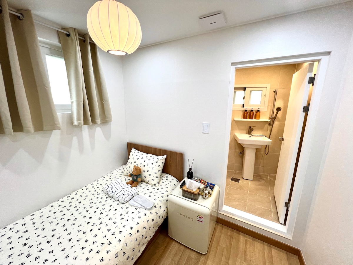 Habitación individual | Ordenador | Baño privado | Autobús del aeropuerto y metro a 5 minutos | Secadora de artículos esenciales gratis | Myeong-dong, Dongdaemun, Seongsu, Hongdae 20-35