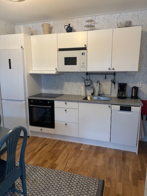Acogedora cabaña con 3 dormitorios, todos con camas dobles recién hechas. En la planta baja hay una cocina, sala de estar y un baño, detrás de la casa, hay acogedores estanques excavados. En la granja hay muchos animales lindos, que puedes acariciar. Estacionamiento gratuito. En la tienda de la granja puedes comprar comida local. Vivimos en la gran casa blanca, donde te registras, cuando llegues. No dudes en pedir el desayuno antes de tu llegada. SEK 120/ persona. Servido en la misma casa 7-9.00. Hay otra casa en la propiedad que también se alquila. patios separados