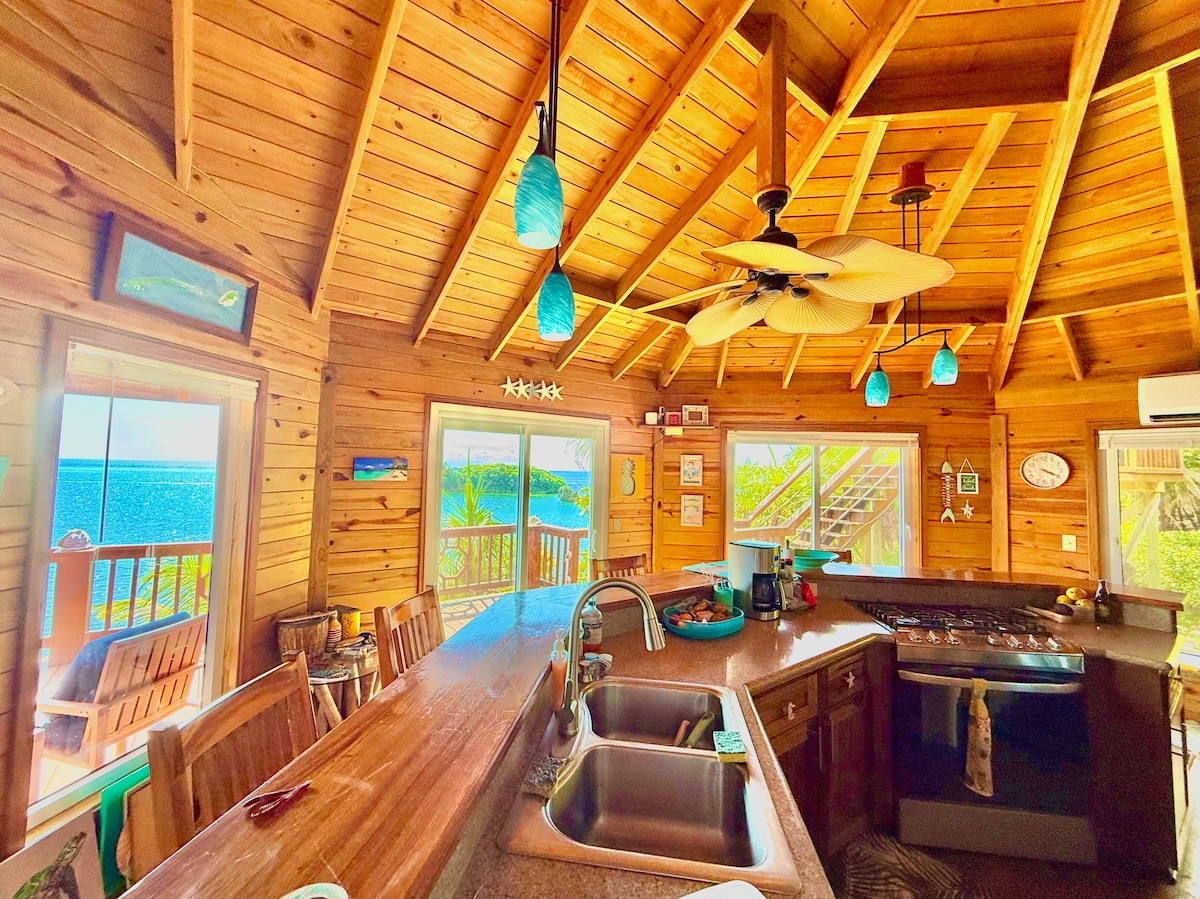Casa frente a la playa en la tranquila orilla norte en una pequeña comunidad privada (Milton Point). Esnórquel/buceo de clase mundial en la segunda barrera de coral más grande del mundo en la puerta de tu casa. Esta casa de playa de 3 dormitorios recientemente remodelada y modernizada. Tenemos 2 tablas de surf de remo, kayak para 2 personas y equipo de esnórquel disponibles para que las uses en cualquier momento. Hay una piscina profunda, palapa privada, muelle y fogata con un montón de asientos y zona de reunión de hamacas en la propiedad para que disfrutes.