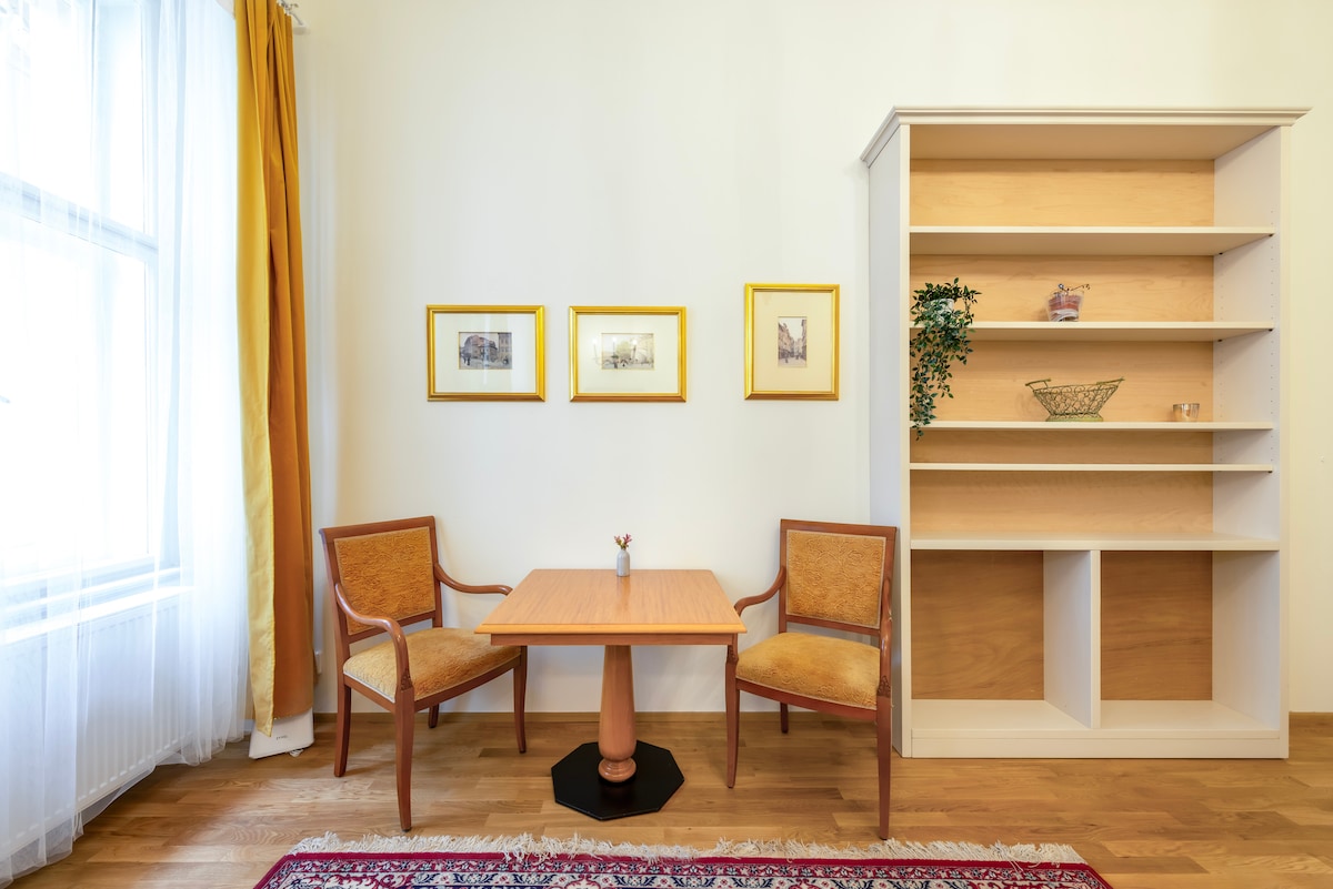 ¡Bienvenido a nuestro acogedor departamento en el corazón de Praga! El apartamento ofrece un alojamiento cómodo para un máximo de 4 adultos y está equipado con todo lo necesario para mejorar tu estancia. El dormitorio cuenta con una cama doble y, en la sala, encontrarás un sofá cama. Ambas habitaciones se pueden cerrar para disfrutar de la máxima privacidad, ya sea que viajes con amigos o familiares. Las persianas enrollables eléctricas crean el escenario perfecto para una relajación o un sueño óptimas, incluso si necesitas descansar durante el día.