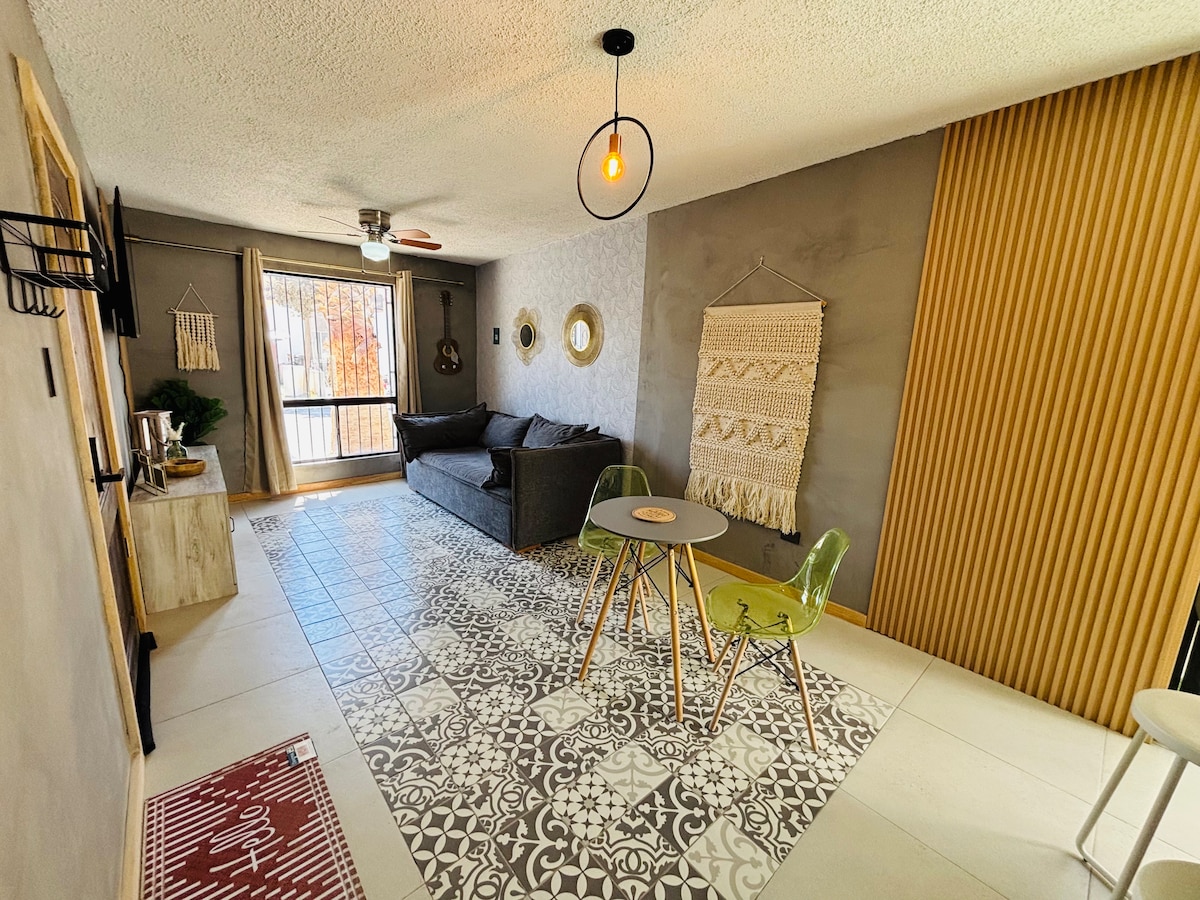 El Apartamento se encuentra cerca del consulado americano y avenidas principales, a dos cuadras de 2 supermercados, plaza bonita, a 5 min. de plaza las misiones, parque central , en punto medio del aeropuerto y la central camionera, nuestra colonia es agradable y tranquila, el departamento "Todo en uno" cuenta con una cama Queen, smart tv, cuenta de Disney, star+Apple tv y Amazon prime, climatizado con minisplit, perfectamente diseñado para tu comodidad, ideal para tus tramites y descanso!