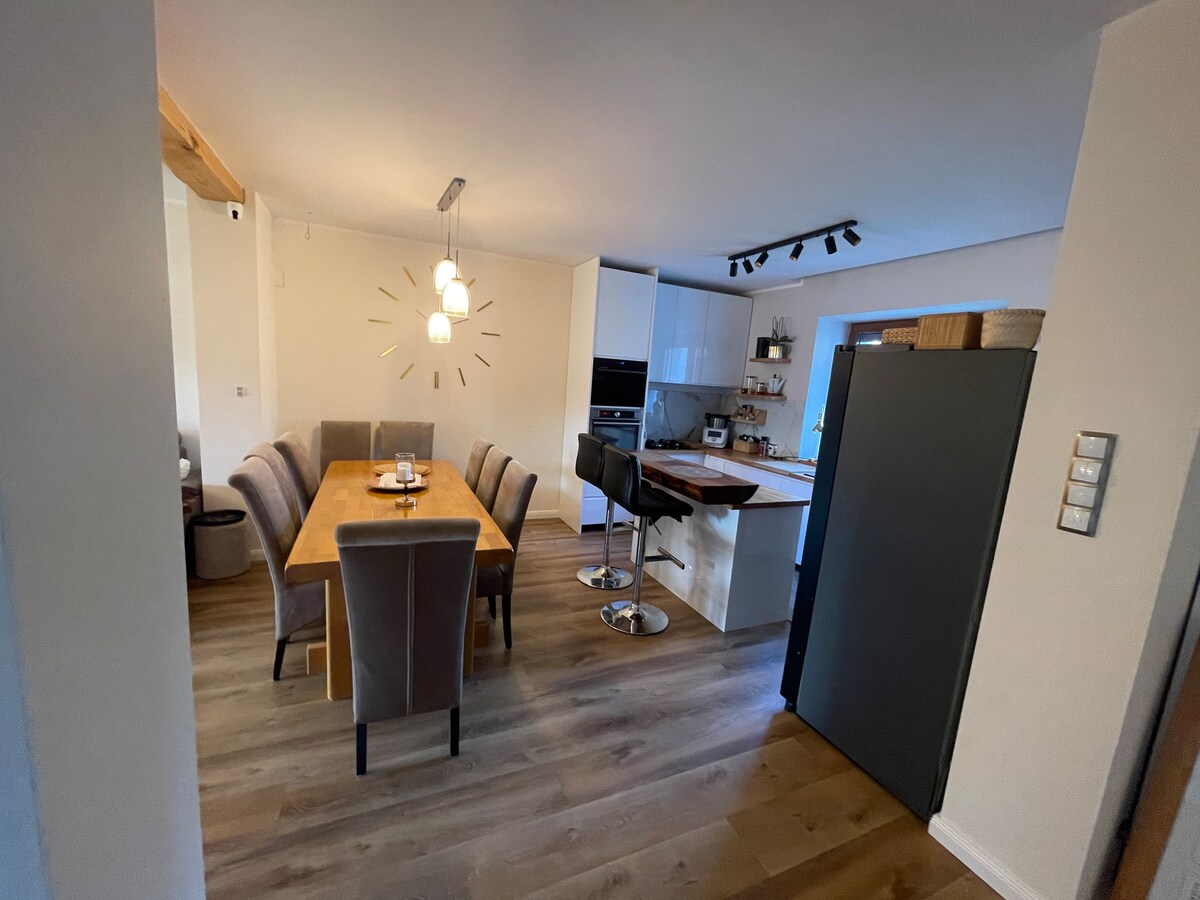 Hola :) Somos Justyna y Piotr. Hemos construido una casa junto a un lago, rodeada de bosques, llena de calidez y energía positiva. Un lago encantador, un bosque, relajación en la sauna, una chimenea, paz y tranquilidad. Todo esto en exclusiva. La casa está diseñada para sentirse parte del paisaje. Estar en la naturaleza. No al lado de ella. Deshazte de las restricciones. Entra en un nivel completamente nuevo de creatividad impulsado por la naturaleza. Prisa, exceso de trabajo. Di no. Descansa lejos del bullicio. Disfruta con nosotros. Funciona. ¡Te invitamos cordialmente!