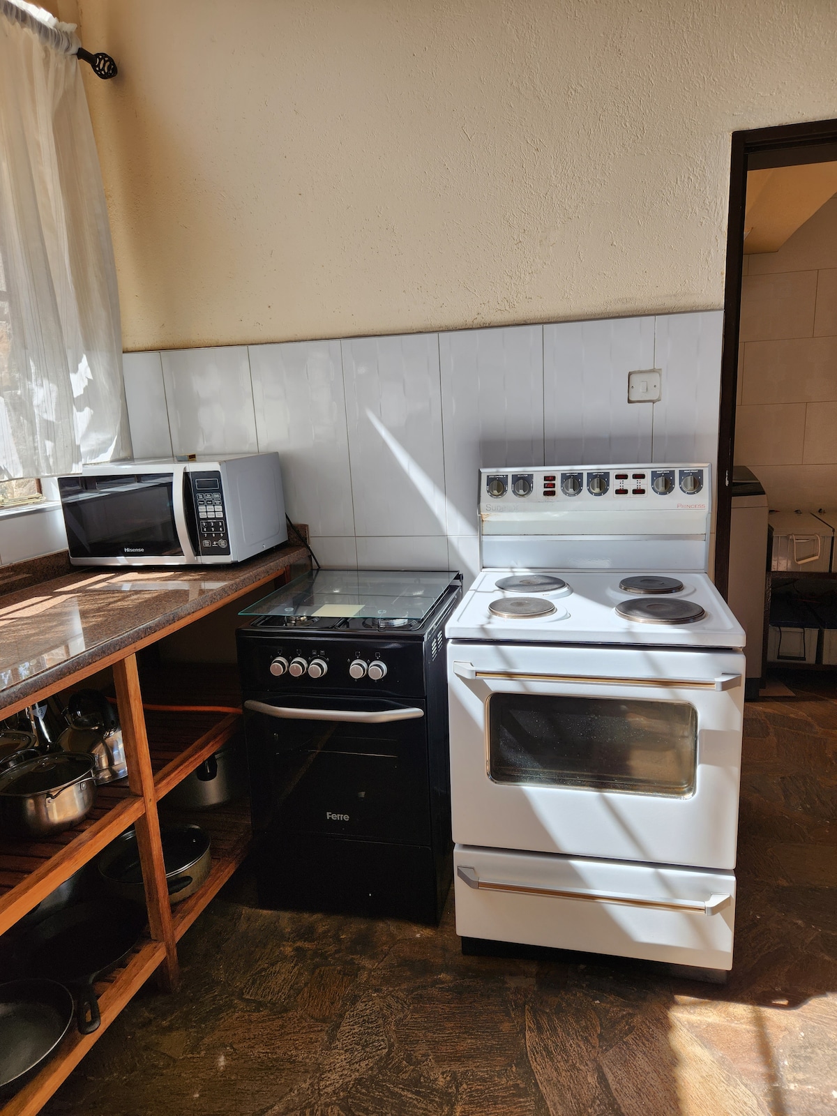 Protea Heights Nyanga Retreat es una casa de 4 dormitorios en un suburbio pacífico y de baja densidad en Nyanga. Todos los dormitorios tienen baño privado. El agua está garantizada y la electricidad se complementa con un sistema solar y una cocina a gas. Wifi y DSTV de cortesía. Hay un quemador de leña para la calefacción. La cocina tiene un lavavajillas. Hay una lavadora para tu ropa sucia. Relájate y recarga las pilas disfrutando de lo que ofrece esta casa o haz excursiones de un día a las cataratas Mutarazi, la visión del mundo, las ruinas de Ziwa y el parque nacional.