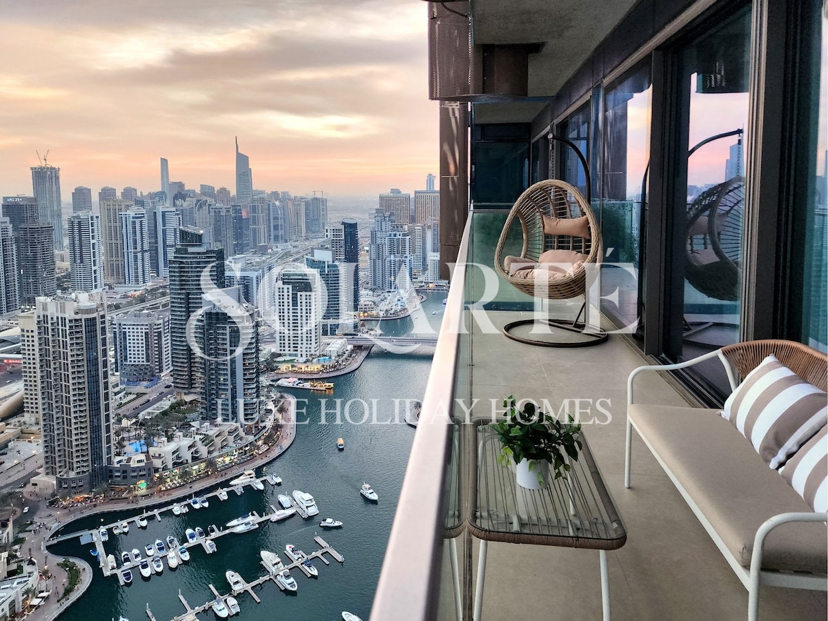 Piérdete en este lujoso 3BR de piso alto con impresionantes vistas de Dubai Marina, Ain Dubai, Palm Jumeirah y el Golfo Pérsico. Relájate con mágicas puestas de sol y noches de cine al aire libre inolvidables en tu amplio balcón privado. 📍 En los alrededores: The Walk y la playa de JBR, Bluewaters, Dubai Marina, Skydive Dubai, Zero Gravity y Bla Bla Dubai. ✔ Acceso a la playa privada, la piscina y el gimnasio ✔ Smart TV y wifi de alta velocidad ✔ Servicio de aparcacoches + aparcamiento en el sótano ✔ Enorme balcón con vistas al atardecer