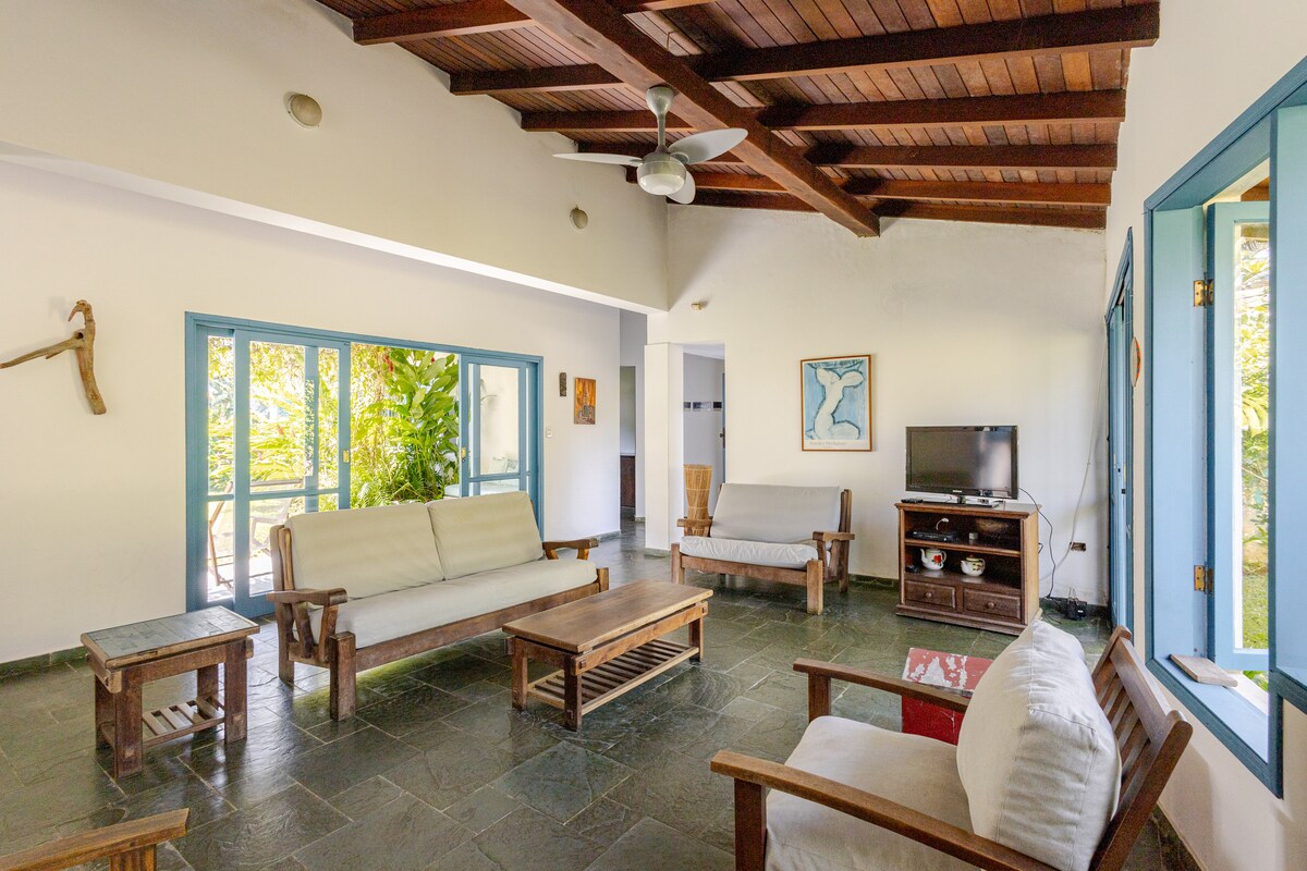 A menos de 10 minutos (650 m) a pie de la playa de Juquehy, la casa de la abuela Darci es acogedora, ¡con una decoración rústica al estilo playero! ¡Cuenta con tres suites (1 cama doble y 1 litera en cada una), parrilla, cocina equipada y un hermoso patio de 200 m²! ¡Excelente para familias, parejas y mascotas! Está cerca del centro (300 m), donde hay centros comerciales, restaurantes y mercados. Estacionamiento en la casa. Todas las habitaciones tienen aire acondicionado y los baños han sido renovados recientemente. ¡Wifi de 300 MB!