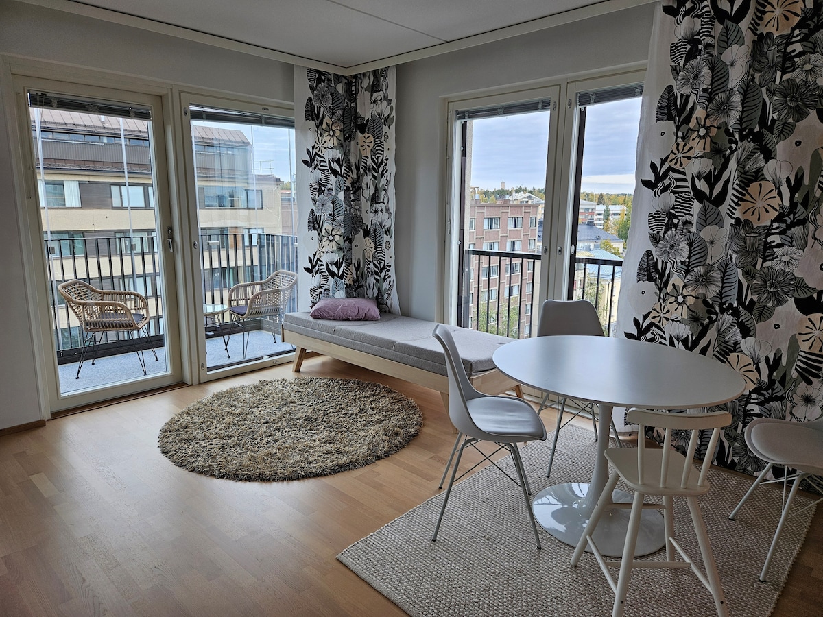La comodidad y la buena energía te esperan en este apartamento céntrico de 40 m2 Duerme bien en una cama de 160 cm con colchón de espuma viscoelástica Disfruta de tu café/té (incluido) en un elegante salón verde y balcón Silla de juego ergonómica, monitor, escritorio ajustable, wifi potente: ¡ideal para teletrabajadores y estudiantes! Explora y camina hasta: 1 min Parque Lounaispuisto 2 min Biblioteca Lähde 5 minutos de la tienda de comestibles K-Market A 5 minutos del campus de la Universidad de Jyväskylä A 5 minutos del lago Jyväsjärvi 10 min Estación central de tren y autobús