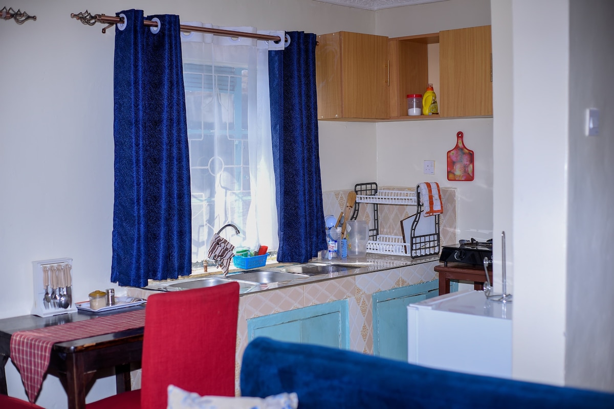 tastefully furnished cottage at the heart of Iten and tarmacked to the gate, nested in a quiet neighbourhood, with a mature lawn. free WIFI, Netflix, ample parking, close to all amenities. a step from.the gate are beautiful running trails
