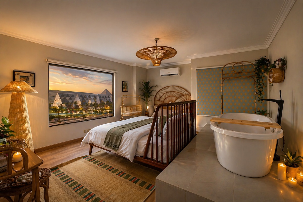 Destination is more than a place —it’s an experience! Welcome to our Spacious and Light Filled Apartment. This beautifully designed space combines modern style with stylish touches. Perfect atmosphere for short and extended stays. Relax in comfort and take advantage of the prime location, with easy access to Giza Pyramids, malls, chic cafes and restaurants. Whether your visit is for business or pleasure, you’ll discover an ideal blend of elegance and relaxation. Book Now & Enjoy !