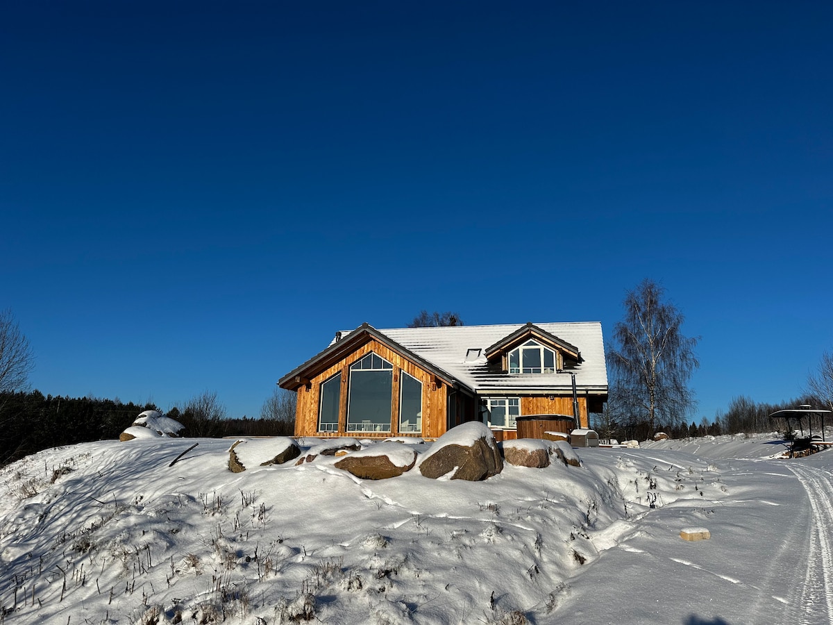 Welcome to a private forest villa designed for peaceful rest and quality time in nature. This spacious 160 m² home offers comfort, privacy, and a calm atmosphere for couples, families, or small groups. Enjoy slow mornings, cozy evenings, and time outdoors surrounded by nature. Whether you want to unwind or spend time with friends, this place offers the right balance of comfort and simplicity. Please note, we charge extra for hot tub. If you book 2 nights on weeknds, hot tub is free of charge!🤠