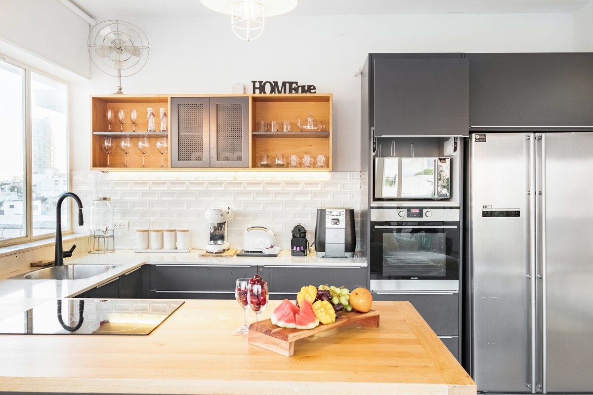 Bienvenido a nuestro impresionante ático renovado ubicado en el corazón de TLV, a pocos minutos de la playa resplandeciente. Ocupando el último piso de un edificio Bauhaus meticulosamente conservado, este apartamento ofrece una mezcla inmejorable de encanto histórico y moderno. un mundo de elegancia sofisticada tan pronto como abres la puerta. El diseño de interiores de alta gama de este ático rinde homenaje al estilo Bauhaus. El diseño espacioso y abierto crea un ambiente acogedor, perfecto para relajarse o entretenerse.