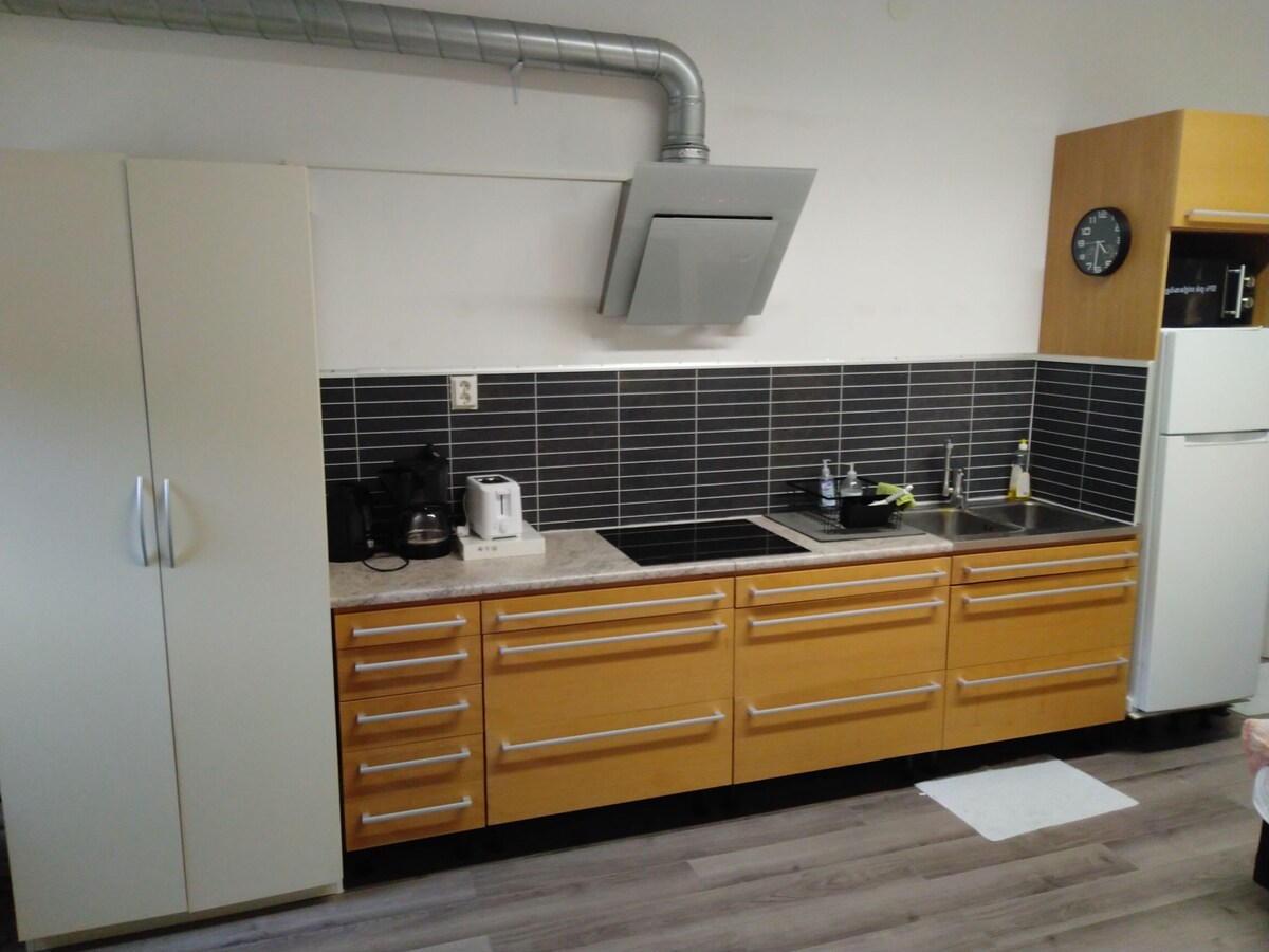 Alojamiento único en casa propia con jardín y patio propio, lugar de baño más cercano a unos 500 metros. La casa tiene 25 metros cuadrados, así como un loft para dormir de 10 metros cuadrados. Superficies luminosas y baño con azulejos con lavadora. Cocina con estufa de inducción y refrigerador y congelador. La calefacción por suelo radiante en toda la casa proporciona una calefacción suave y buena. www.instagram.com/studiostyrso Moderno estudio con interior luminoso y una nueva cocina, calefacción central para los fríos días de invierno. Compacto viviendo en su mejor esfuerzo. Prohibido fumar en interiores/Prohibido fumar en el interior del alojamiento.