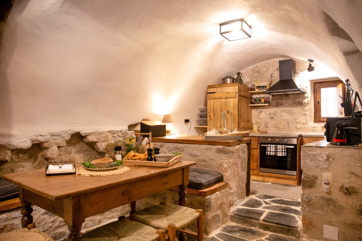 Αναπαλαιωμένο παραδοσιακό σπήλαιο με σεβασμό στην ιστορία και την αρχιτεκτονική της Μάνης. Η παρεχόμενη υπόσκαφη σουίτα 400 ετών , προσφέρει μια μοναδική εμπειρία στους επισκέπτες, συνδυάζοντας την αυθεντικότητα του σπηλαίου με τις σύγχρονες ανέσεις .Το κτίριο είναι κατασκευασμένο εξ'ολοκληρου από πέτρα σε παραδοσιακό μανιάτικο στυλ. Στο εσωτερικό, θα βρείτε ένα αυθεντικό λάξευμα στον βράχο, φωτισμένο διακριτικά, που αποκαλύφθηκε και αναδείχθηκε κατά την προσεγμένη αναπαλαίωση του χώρου.