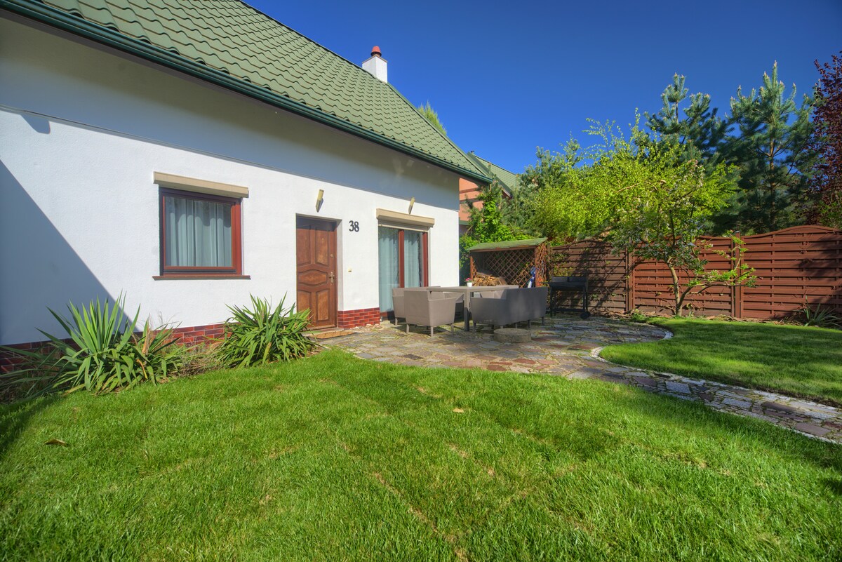 Domki są położone na działce o powierzchni 1400 m2, oddzielone od siebie dwumetrowym ogrodzeniem zapewniającym prywatność. Każdy domek dysponuje oddzielnym tarasem z miejscem do grillowania. Do Państwa dyspozycji jest prywatny parking, znajdujący się na terenie zamkniętego obiektu. Obiekt przyjazny zwierzętom. Miejsce ciche i spokojne, idealne na wypoczynek z dala od zgiełku.