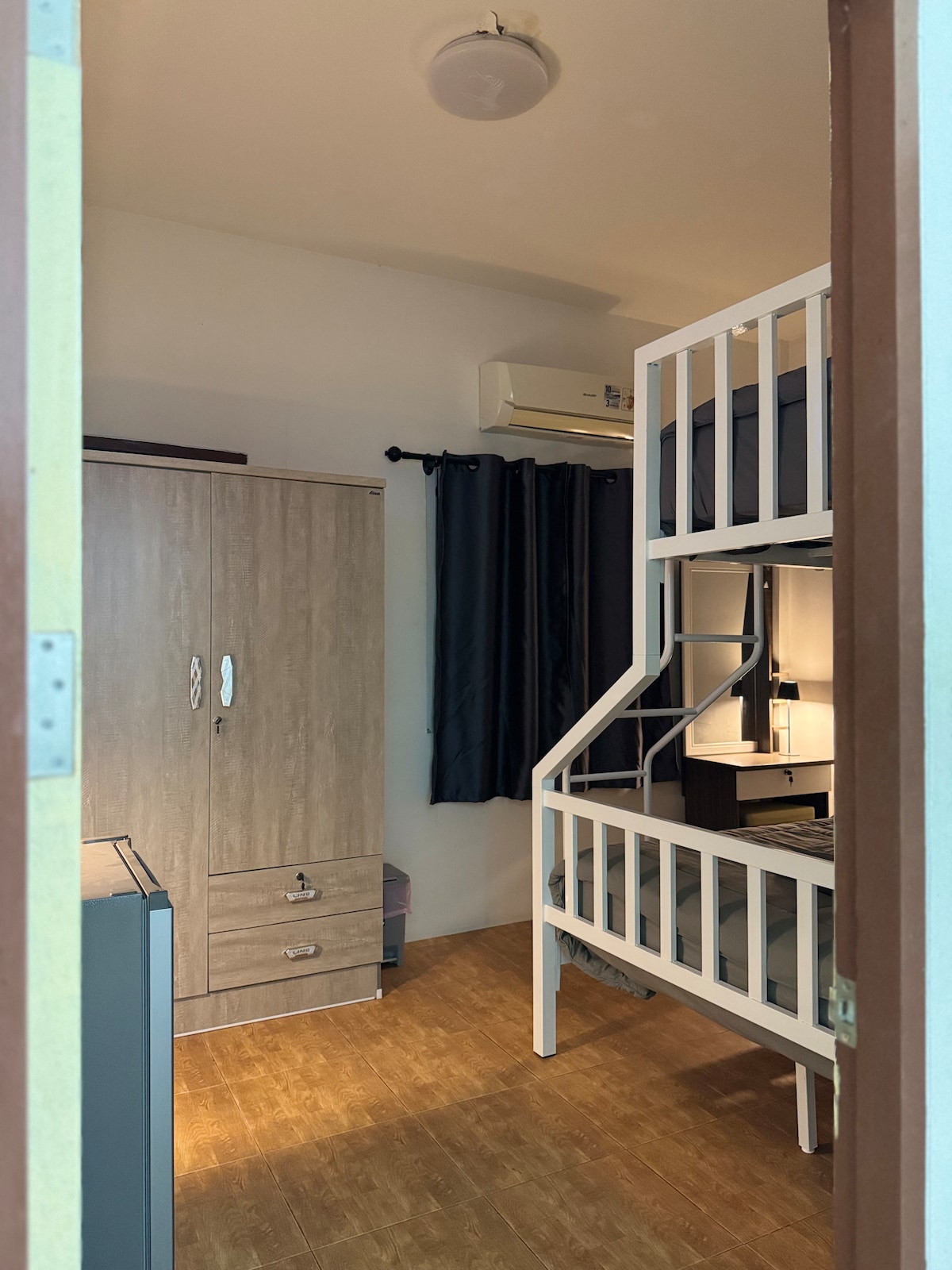 🌿Escápate a un escondite sereno en el corazón de Ban Tai, Kanchanaburi. Nuestro hotel ofrece habitaciones limpias y elegantes situadas sobre una acogedora cafetería y una relajante tienda de masajes tailandeses, que ofrecen todo lo que necesitas para una estadía rejuvenecedora. 🛏️Tu habitación privada - Espacio luminoso y climatizado con cómoda cama tamaño queen o individual. - Baño privado con ducha caliente y servicios básicos - Grandes ventanas o balcón con vistas al jardín o a la calle. - Wifi de alta velocidad, televisor inteligente y un pequeño escritorio apto para trabajar.