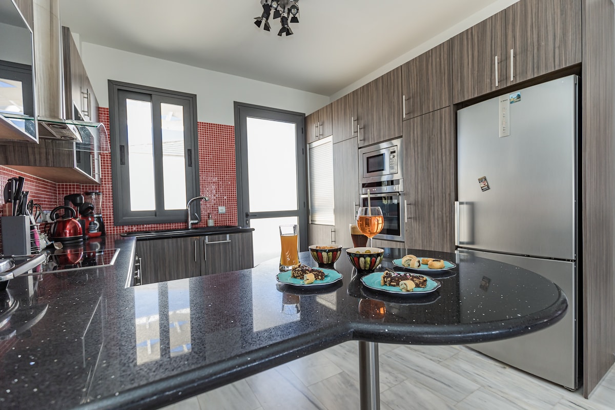 Despiértate con el sonido de las olas en Villa Goldfish, una escapada de lujo y única de 5 dormitorios frente a la playa en Larnaca. Cada dormitorio tiene su propio baño completo para una máxima privacidad. Disfruta de una piscina privada y un césped privados que conducen directamente a una de las playas más bonitas de Larnaca, una zona de barbacoa y un jacuzzi en la azotea con vistas panorámicas al mar. Perfecto para familias y grupos que buscan lujo sin zapatos, una vida espaciosa y puestas de sol inolvidables a solo unos pasos del Mediterráneo.