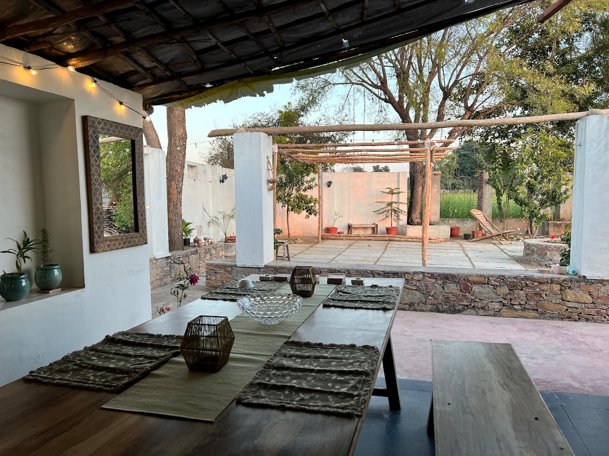 Esta villa de 1 dormitorio totalmente amueblada con piscina privada está a solo 6 km del aeropuerto de Udaipur y a 15 km del centro de la ciudad. Perfecto para familias, parejas, viajeros solitarios, guerreros de WFH o una escapada de fin de semana, ofrece: 🌊Una piscina privada para relajarte 🖼️Interiores acogedores 🌿Un entorno sereno ✈️Acceso rápido al aeropuerto El lujo asequible se une a un refugio en la naturaleza, todo sin arruinarte.🌿☀️ Nota: Esta villa es ideal para 2, aunque podemos estirar hasta 4... Colchón adicional disponible a 1500/día