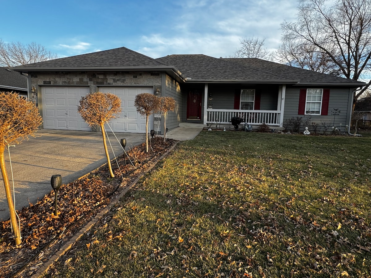 Todo el grupo se sentirá cómodo en este espacio espacioso y único. Espacio tranquilo en el valle, donde todo lo que escuchas por la mañana es un canto de gallo. ¡Tómate un café en el muelle mientras alimentas a koi en el estanque koi! Fuera de la trayectoria del tráfico. A poca distancia en auto de I 435 e I 35. ¡A aproximadamente media hora en auto de los estadios Royals y Chiefs, el centro de KC y la autopista Kansas! ¡A minutos de los senderos para bicicletas y caminatas que rodean el lago Smithville!