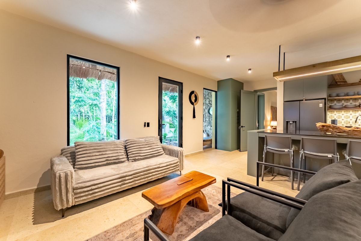Casa Tattva es una villa privada en la Ruta de los Cenotes, ubicada en el kilómetro 29.7, donde la arquitectura y la selva conviven de forma natural. Sus espacios abiertos, la luz y la vegetación crean una atmósfera serena que invita a bajar el ritmo y reconectar con lo esencial. Un refugio íntimo y privado, ideal para descansar, compartir y vivir la naturaleza con calma.