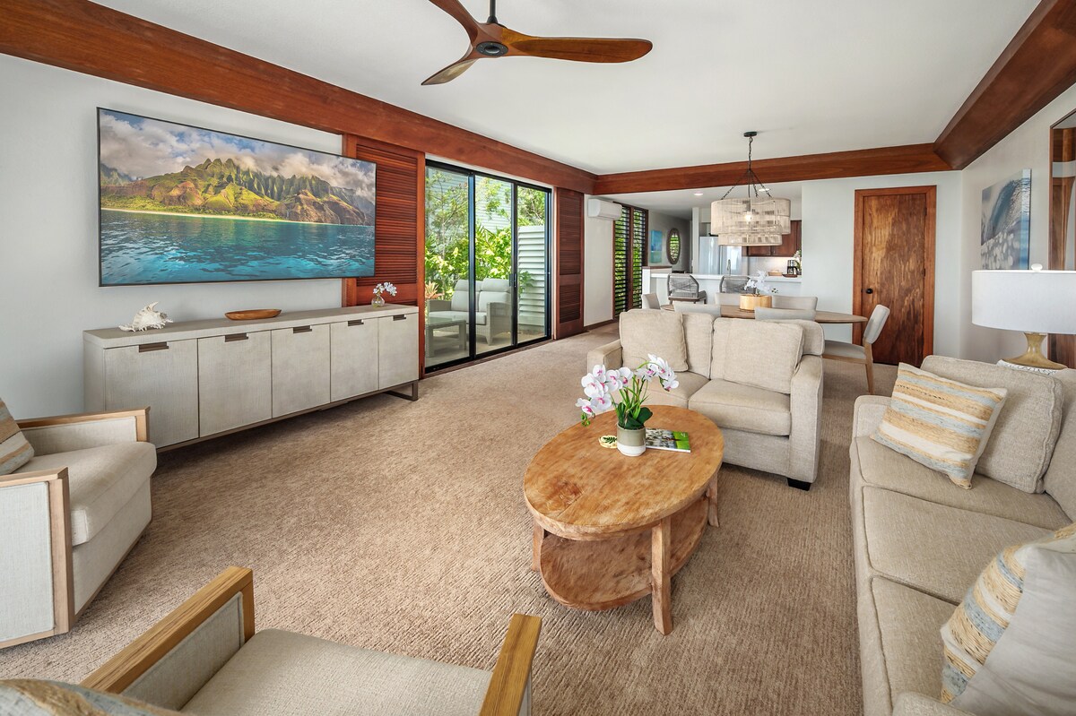 Coconut Coast Beauty at Lae Nani 338 | ❄️ AC Included 🌊 Oceanview Third-Floor Condo | 1 Bedroom | 1.5 Bathrooms A calm, coastal retreat awaits at Lae Nani 338, a newly remodeled oceanview condo set on lush tropical grounds just steps from the shoreline. With peaceful ocean views from the living room and a spacious primary suite, this residence is ideal for couples seeking a relaxing escape along Kauai’s Royal Coconut Coast.