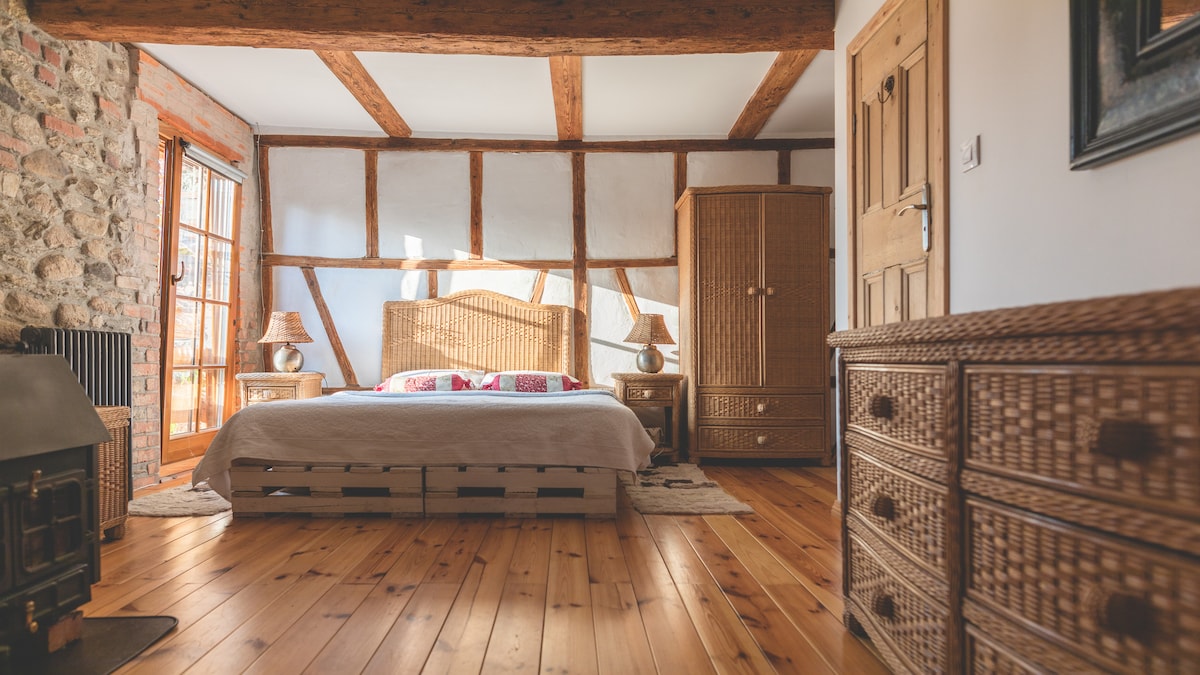 En algún lugar de la pradera, entre los Montes de los Gigantes y las montañas Rudawy Janowickie, se encuentra una casa. Los prados susurran y los pájaros cantan a su alrededor. Empiezas el día con una taza de café en la amplia terraza, suspendida sobre la hierba como una balsa en el mar. Cuando llueve, te sientas junto a la ventana con vistas a "Śnieżka". En las noches de invierno, enciendes la chimenea, en verano te sientas junto al fuego en compañía de luciérnagas y grillos. ¿Aburrimiento? Tal vez. ¡Pero cuidado, este aburrimiento hace que no quieras irte!