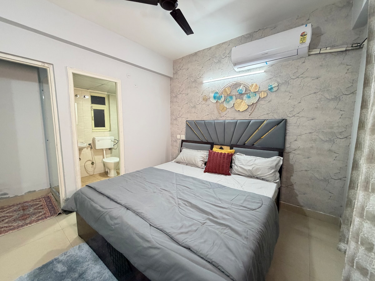 Acogedor y minimalista apartamento de 2 dormitorios y cocina en una comunidad cerrada con su propio mercado y una licorería cerca. Una habitación tiene un baño adjunto. Disfruta de wifi, TV, aire acondicionado, secador de pelo y una cocina totalmente amueblada. Zomato y Blinkit te lo llevan a la puerta de tu casa. Llegada autónoma fácil con un PIN seguro. Un espacio cómodo y tranquilo, perfecto para trabajar o para una escapada relajante. 🌿💛