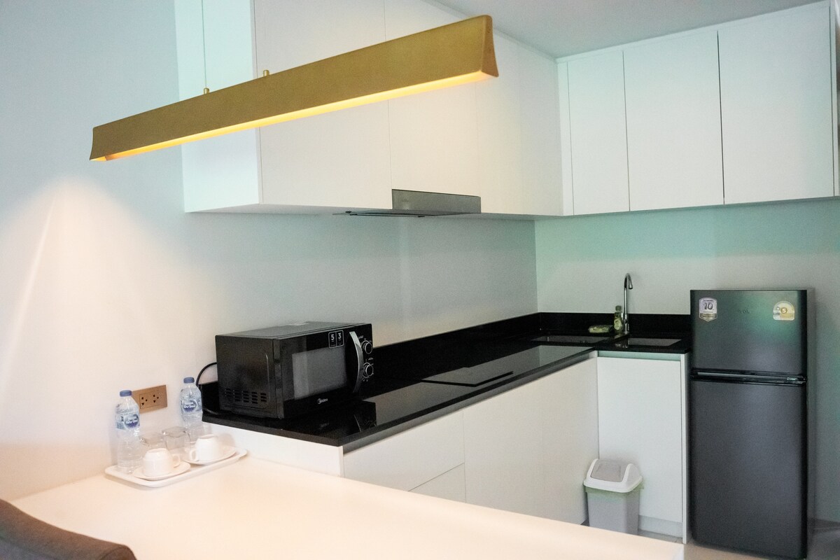 La mejor vista al atardecer al atardecer en la azotea, piscina y cocina, bañera, balcón, 1 dormitorio, 1 sala de estar, habitación acogedora y seguridad las 24 horas.