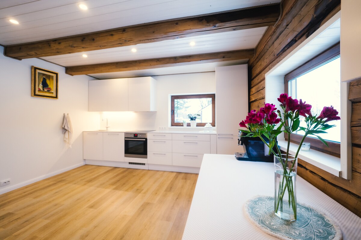 Este alojamiento céntrico te ofrece todo lo que necesitas. Aparcamiento privado en el patio, cama cómoda y cocina totalmente equipada. El apartamento está situado en una antigua casa de madera donde una misteriosa escalera te conduce a un luminoso y elegante apartamento tipo estudio (en el segundo piso). Todo lo que necesitas está ahí. Cafeterías a la vuelta de la esquina y las colinas del castillo de Viljandi a 10 minutos a pie.