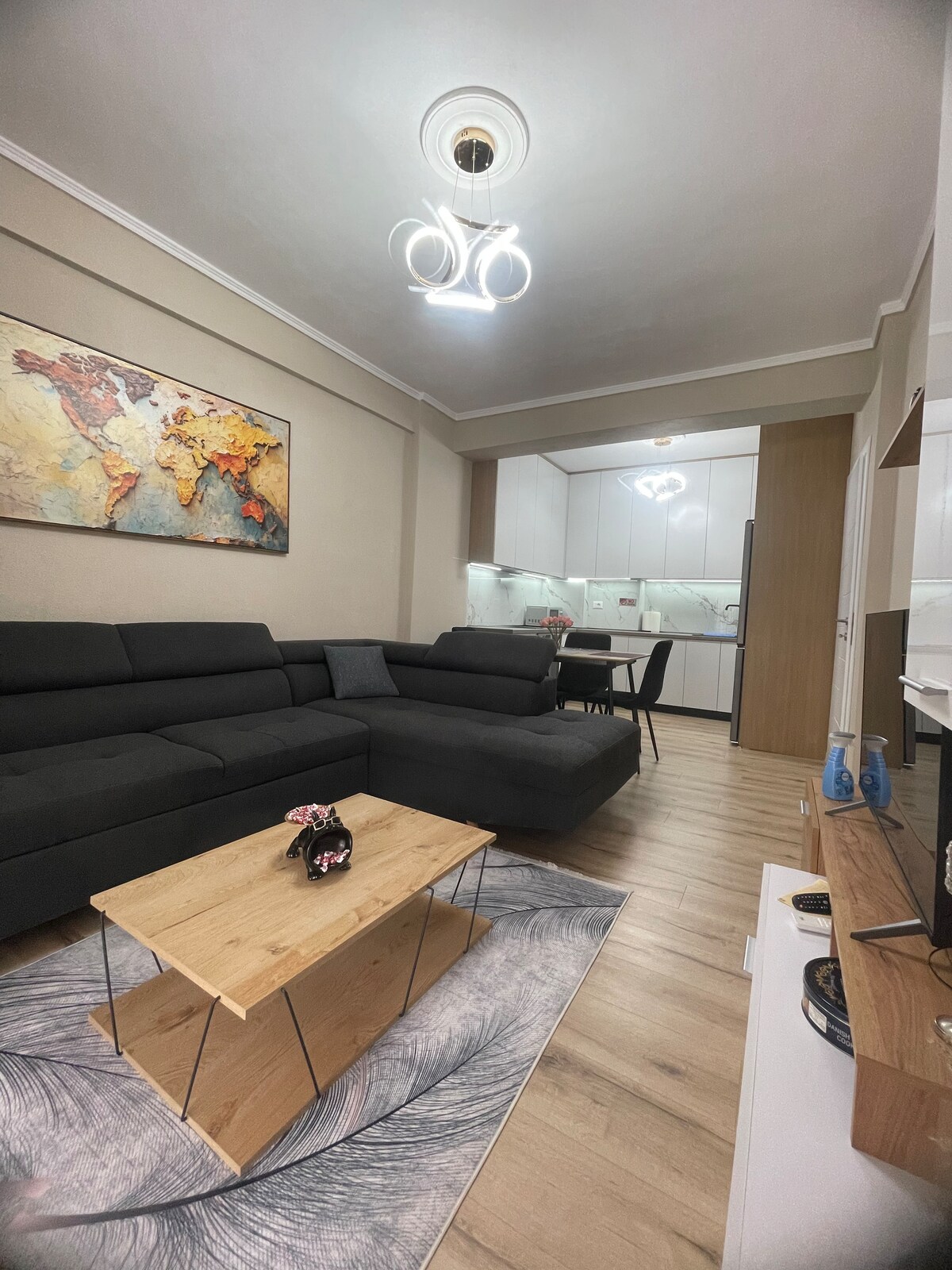 Sumérgete en la elegancia y el lujo de este apartamento. Un lugar único y espacioso para todos los que buscan una estancia mágica en Tirana. Con una ubicación increíble, a solo 800 metros del centro de la ciudad y a 37 minutos en coche del aeropuerto, este apartamento es el lugar adecuado para pasar tus días y noches. Guarda este alojamiento para una fecha especial. ¡Disfruta de tu estancia en el apartamento de Sia!