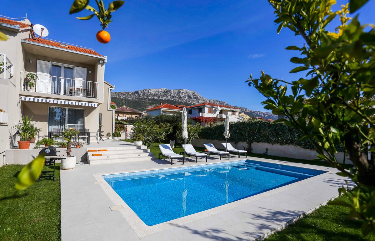 Villa Fox Exclusive fue construida recientemente y representa un estilo moderno y lujoso en la costa dálmata. La villa está situada en una zona tranquila y silenciosa con increíbles vistas al mar Mediterráneo y a las islas. Rodeada de plantas autóctonas, olivos y palmeras, la villa te invita a pasar unas vacaciones agradables y relajantes con tu familia y amigos. La piscina climatizada y la playa cercana hacen de esta villa un buen lugar durante tu estancia en Croacia.