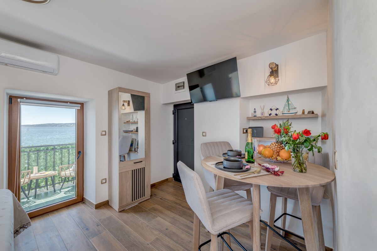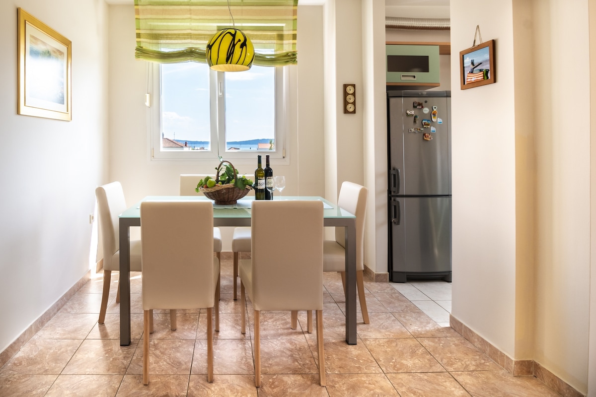 Apartamento con vistas al mar situado a 5 metros de la playa. Split, la segunda ciudad más grande de Croacia y capital de la región de Dalmacia, está a solo 25 minutos en autobús local, y Trogir está a 10 minutos en coche. Traslado corto al aeropuerto (aprox. 15 minutos) y excelente ubicación entre Split y Trogir. El apartamento está situado en el paseo marítimo con numerosos restaurantes cerca.