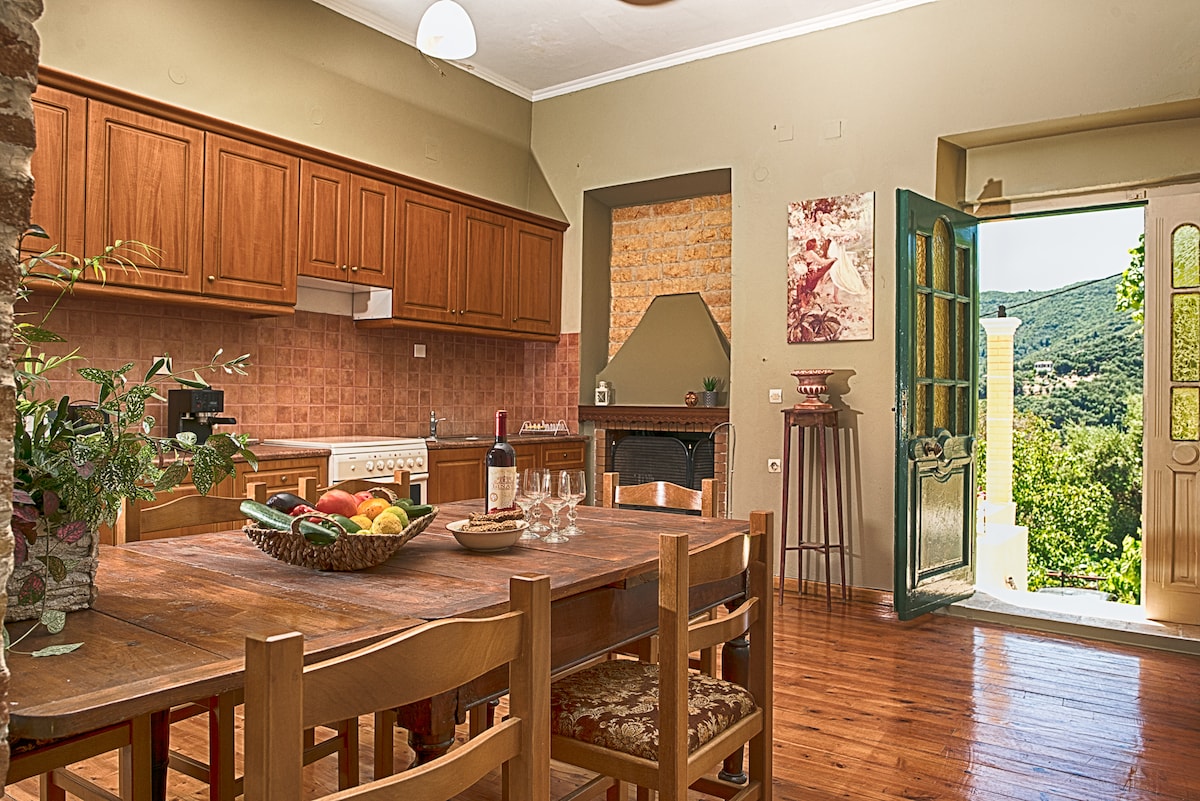 La pequeña y encantadora casa de Kato Pavliana es una casa de campo del siglo XIX renovada. Su decoración y mobiliario se han realizado mediante el tratamiento de materiales antiguos y muebles de madera y hierro. Tiene un dormitorio, un espacio abierto de cocina, sala de estar, comedor y ático, un baño. También tiene una terraza con vistas panorámicas del sur de Corfú, el Adriático y el Jónico. Está equipada con todos los aparatos eléctricos necesarios para satisfacer las necesidades diarias.