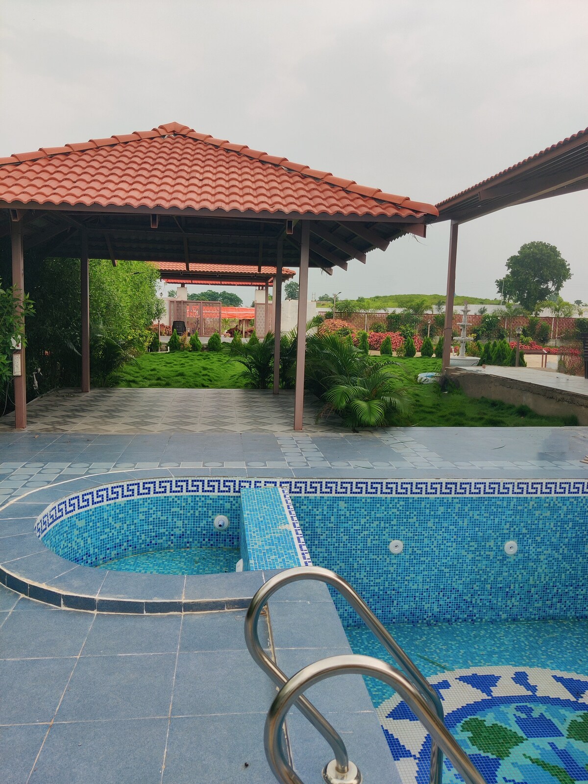 Relax with the whole family at this peaceful place to stay. Huge Farm House Villa with 10,000 ft Lawn, 5 Gazebos, Pool. Looking to host a party or a special event? Aamod Villa is ideal venue to host an unforgettable party 45 Km from Nagpur . Aaamod Villa is available for: Birthday, Anniversary, Family Get-together, Day Picnic • Parking • Pet Friendly • 3 Big Lawns 10000,500,2000 • 2 Fountain • 5 Gazebos • Machaan • Swimming Pool • Rain Dance • 1 Large Hall • Kitchen with Gas • Music System
