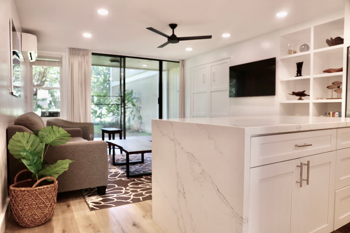 ¡Planea una escapada romántica en pareja, un viaje de trabajo remoto o un retiro familiar! Despiértate con el canto de los pájaros y la brisa tropical que sopla a través de los árboles en este luminoso apartamento recién renovado en Turtle Bay. Situado en la famosa costa norte de Oahu, a pocos minutos de la playa, restaurantes, tiendas en Turtle Bay Resort y a poca distancia en coche de esnórquel y surf en Sunset Beach. Totalmente abastecido con delicias locales. Los propietarios locales te darán todos los consejos para que disfrutes de un gran viaje.