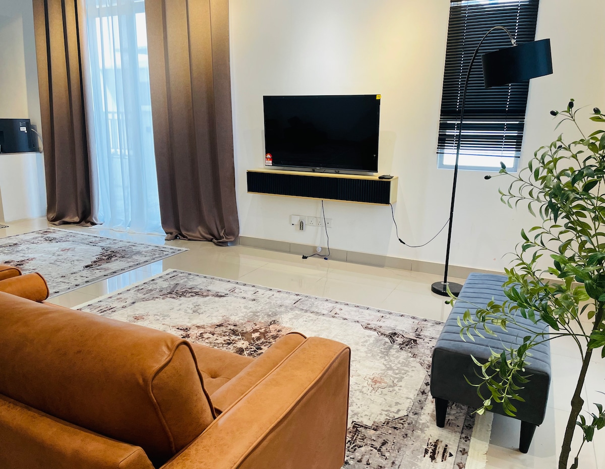 Entra en un espacio luminoso y espacioso con colores contemporáneos y acabados elegantes. El interior cuidadosamente diseñado cuenta con un acogedor dormitorio con lujosa ropa de cama, una cocina bien equipada y una cómoda sala de estar con TV inteligente y wifi de alta velocidad. Los grandes ventanales traen luz natural, creando un ambiente cálido y acogedor, por lo que es ideal para reuniones familiares. El centro de datos de Sedenak está a solo 15 km de distancia, por lo que es una estancia conveniente para los profesionales que viajan con la familia.