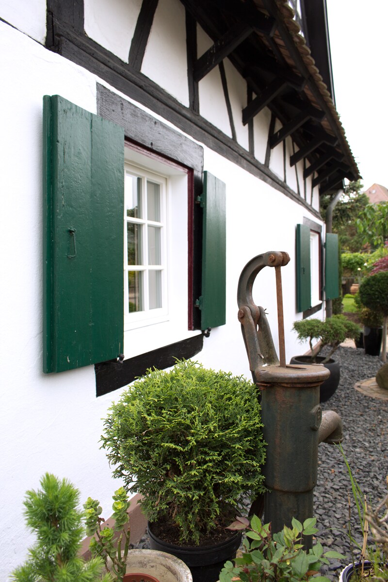 La pequeña casa de entramado de madera (casa pequeña) de 1836 en Kehl-Kork fue ampliada y renovada con mucho amor. Situada en una zona rural, se puede llegar a la ciudad francesa de Estrasburgo en pocos minutos en coche. También se puede llegar fácilmente en tren desde Kork o en tranvía desde Kehl-Zentrum. La casa está situada en el histórico Bühl de corcho con el toro de corcho. La casa es para un máximo de 3 adultos o 2 adultos y 1 niño. (Hay un sofá cama y una escalera que conduce a la litera de 1,80 m de ancho)