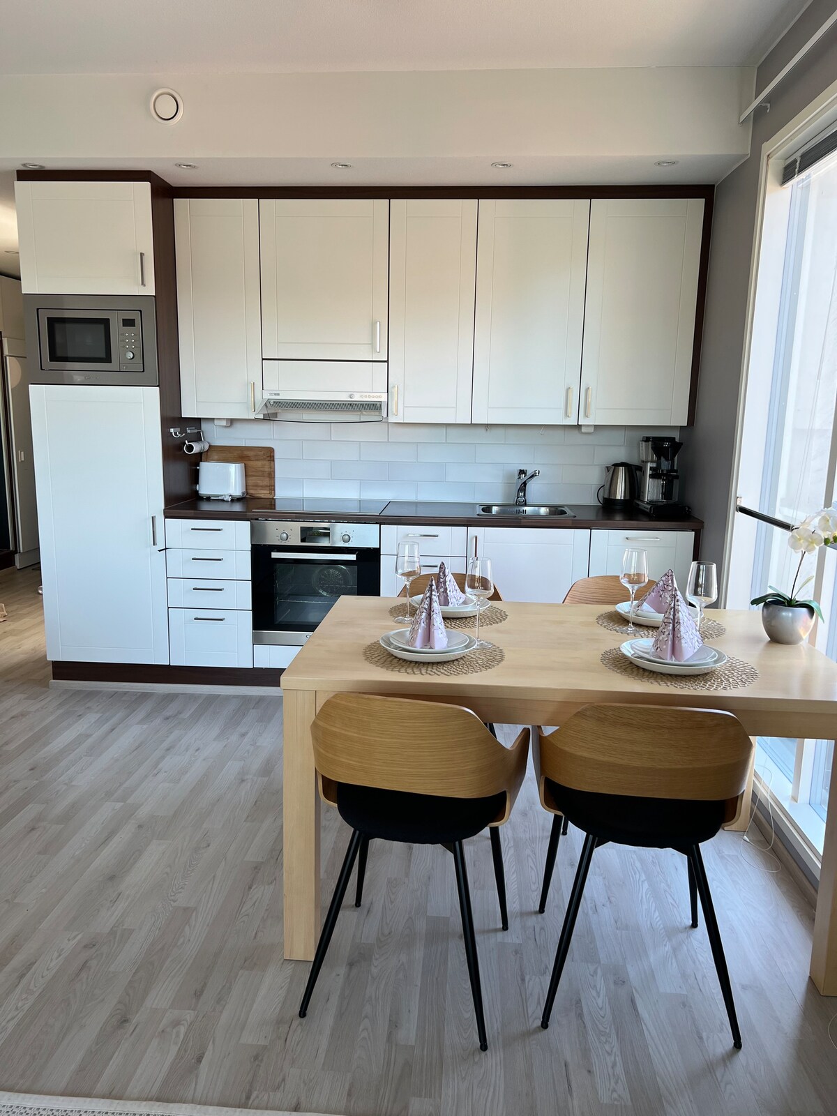 Kemi city IV, nice studio, free private parking. SPECIAL PRICES! Tämä tyylikäs majapaikka sopii täydellisesti pienille perheille ja yksin matkustaville. Asunnossa on kaksi uutta sänkyä 90x200 ja levitettävä vuodesohva 120 cm Asunto on juuri remontoitu ja asunto on kalustettu uusilla kalusteilla. Keittiössä on jääkaappi-pakastin, mikro, uuni, hella, paahdin, keittimet ja kaikki tarpeelliset astiat ja ruuanlaitto välineet. Pesuhuone on uusittu ja siellä on pesukone ja kuivausrumpu