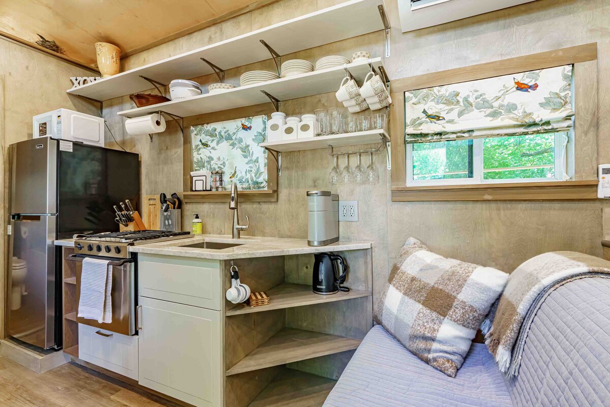 After the hustle and bustle of the city, or a long day touring historic Texas towns, take a break and escape to this relaxing getaway. Located in the quaint town of New Ulm, Texas, The Bird's Nest is a quick 20-25 minute drive from all attractions; the perfect base camp for a trip to some local art galleries in Fayetteville or a day of antiquing in the Round Top area and just 2 miles from The Vine event venue and wine tasting room.