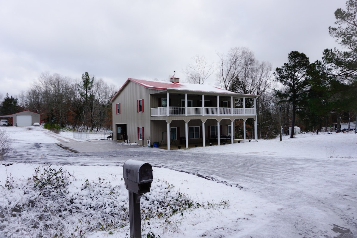 Relájate con familiares y amigos en esta tranquila cabaña de estilo montañoso a pocos minutos del lago Barkley. Escondido en un entorno tranquilo y boscoso, este espacioso refugio rústico cuenta con 4 dormitorios, 4 baños completos, 2 salas de estar y sofás cama. El espacio al aire libre bien equipado es ideal para relajarse o entretenerse después de un día en el agua. Ubicada a solo 0,7 millas de una rampa para barcos mantenida por el estado y a solo 8,9 millas de la pesca principal debajo de la presa, esta cabaña es una gran base para aventuras en el lago.