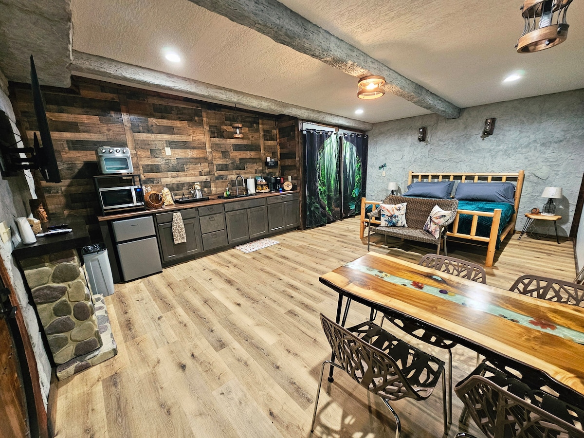 Descubre el encanto de la aldea de Kentucky en Restin' Holes. Nuestro acogedor y único alquiler se encuentra en el Bourbon Trail, pero aún así escondido en 20 acres para relajarse y disfrutar de muchas comodidades. Relájate con la tranquila cascada de nuestro destino rústico. Queremos que te relajes y te sientas como en casa. *Parque infantil*Bañera de hidromasaje*Sauna*Gimnasio*Fogata*Murales pintados Restin' Holes se creó pensando en todos. Reserva tu estancia hoy y descubre las vacaciones perfectas y crea recuerdos inolvidables.