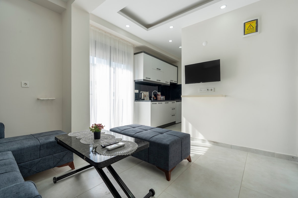 Bandera azul Konyaaltı Beachpark 2 km, casco antiguo 3 km. 1 dormitorio 2 camas individuales y sala de estar con sofá cama. Apartamentos recién construidos en edificios resistentes a los terremotos, el aire está desinfectado por Ozone Systems.24/7 recepción. Parque local bueno para entretenimiento infantil y para adultos equipos de ejercicio deportivo para uso público. Supermercados locales a 1 minuto. Cocina totalmente equipada, tiendas, centros comerciales y restaurantes muy cerca, autobús local y tranvía a diez minutos a pie, muchas de las atracciones de Antalya a poca distancia.