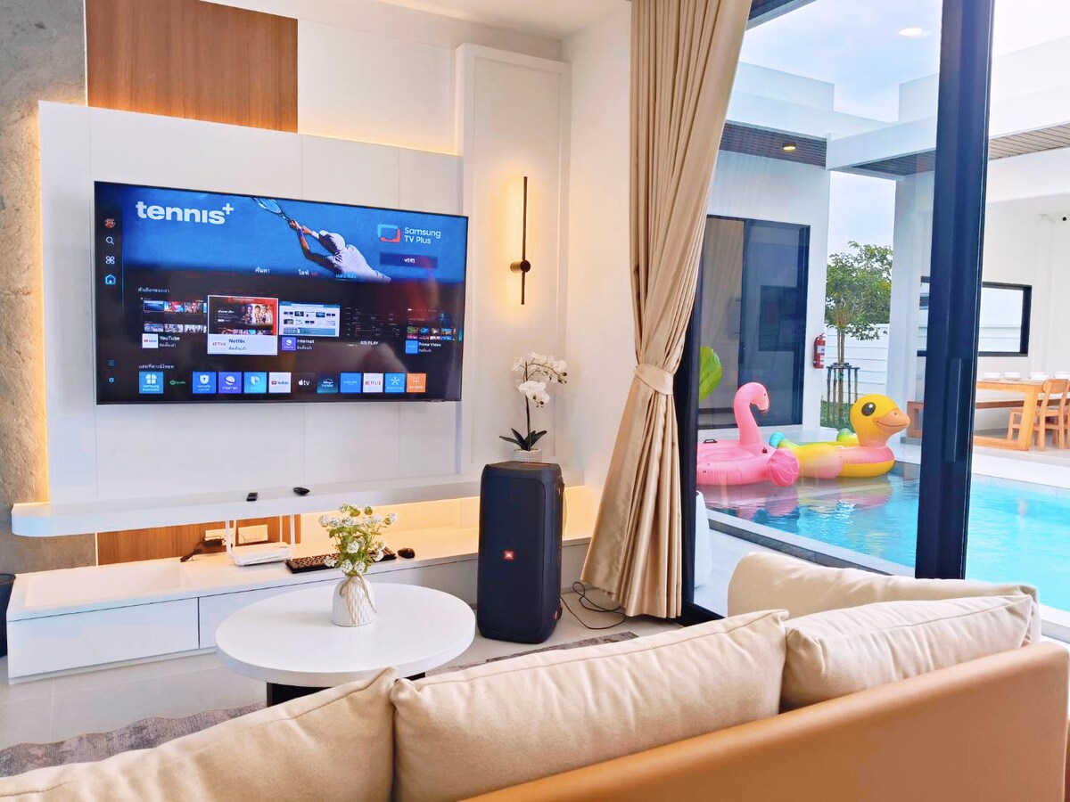 Amplio entorno natural, estacionamiento para varios vehículos, ideal para familias o grupos de amigos que buscan privacidad. 🛌 3 dormitorios, 4 baños 🛋️ Sala de estar • Sofá/Mesa de billar/Smart TV/Karaoke • Mesa de comedor para 6 personas • Microondas/tostadora/refrigerador/dispensador de agua potable 🍽️ Cocina Piscina de agua salada de 3 × 7 metros 🏊🏻♂️ con zona para niños 🚗 Transporte A 5 minutos del parque Hat Yai A 10 minutos de Hatyai Village A 20 minutos de Lee Garden Plaza y de Central Festival Hatyai A 30 minutos de la playa.