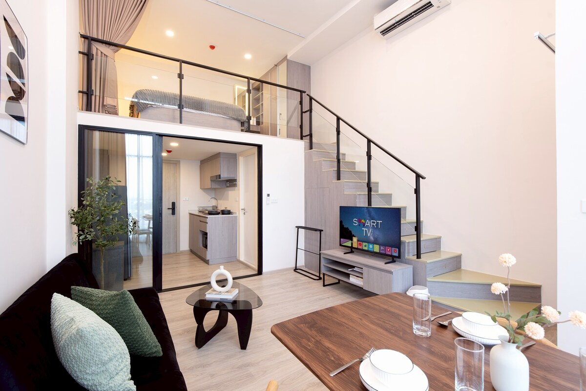 Elegante dúplex en So Origin Phahol 69, a pocos minutos del aeropuerto DMK. Disfruta de un diseño de dos niveles con un acogedor dormitorio arriba, una cómoda sala de estar, wifi rápido y un diseño moderno. Rodeado de comida callejera y tiendas de conveniencia con fácil acceso al transporte. Perfecto para vuelos tempranos, escalas o estadías cortas en Bangkok.