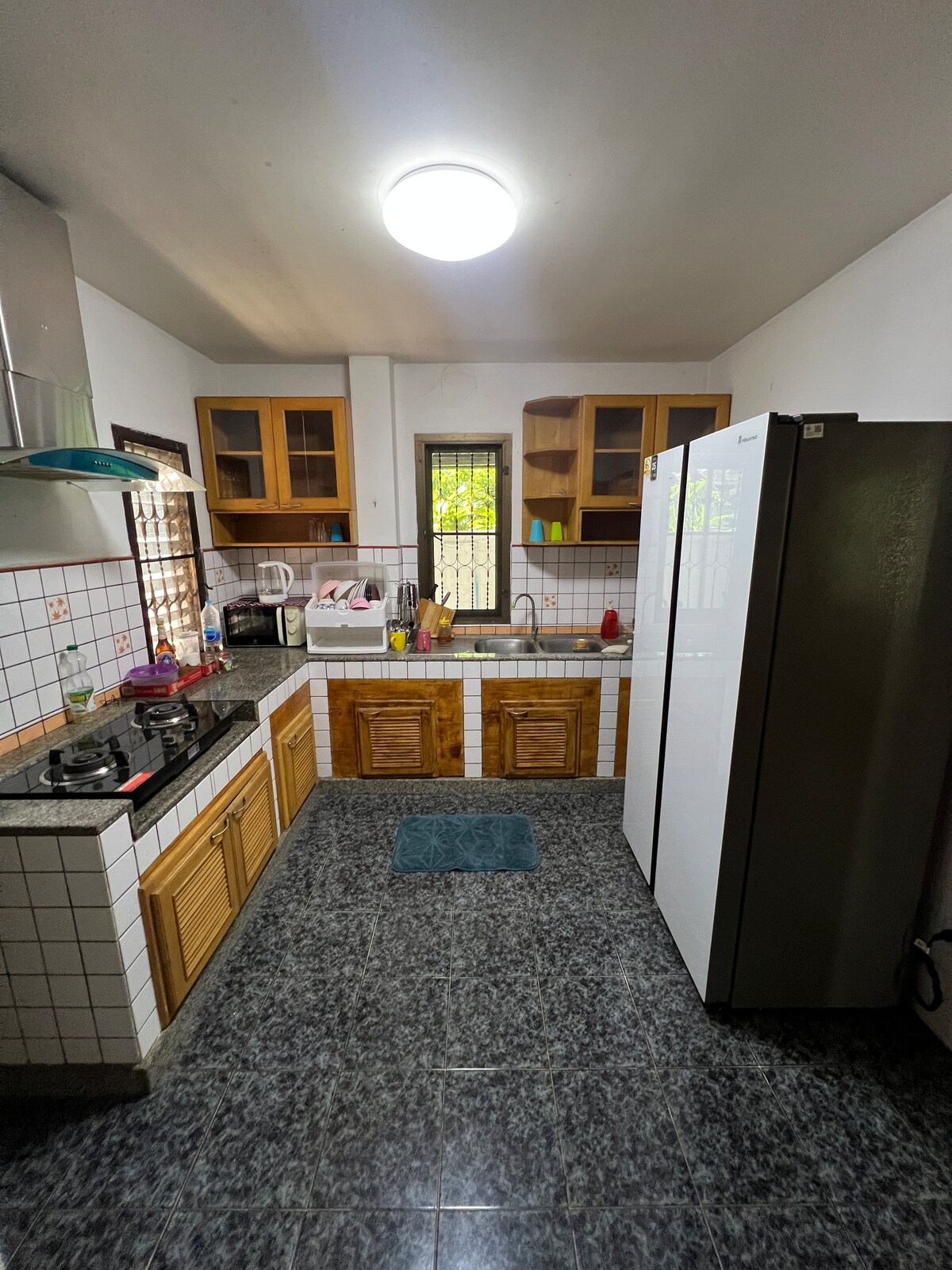 Es un lugar elegante para alojarse en la casa, el jardín es sombreado. ✓Hay un césped al aire libre para que los niños corran y alimenten a los conejos. ✓Un jardín con una mesa de madera para una pequeña fiesta. ✓Servicio por parte del dueño de la casa > 1 baño grande con agua caliente/fría. Se pueden estacionar > 5 autos dentro de la valla de la casa. > Wifi gratuito > Sala común (aire acondicionado) > Porche delantero con sofá > Servicio de pan de café > Equipo casero que incluye TV, refrigerador, secador de pelo, microondas, horno grande, estufa de gas, tostadora, sartén, shabu, cerdo, plancha, utensilios de cocina y cocina.