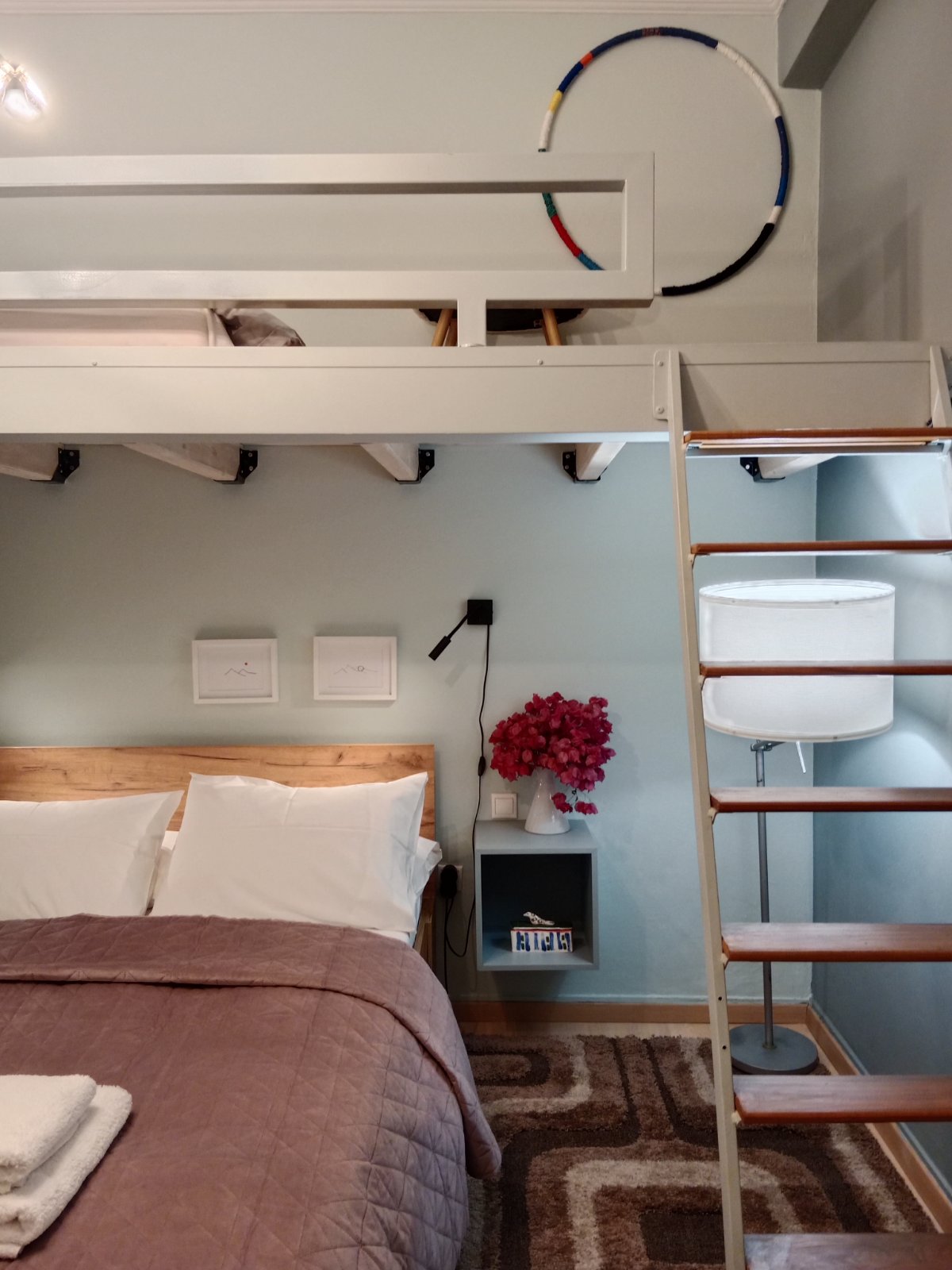 Un ático de estilo real verdaderamente único a solo 8 minutos del aeropuerto de Atenas. Al igual que un museo privado, cuenta con antigüedades, camas extragrandes de 200×220, una gran terraza privada y acceso a la azotea para disfrutar de vistas panorámicas y avistamiento de aviones. Ideal para familias, con mucho espacio y carácter que no encontrarás en ningún otro lugar de la zona. Las puertas de vidrio inundan el espacio con luz natural y enmarcan el cielo abierto, una estancia única que combina el encanto clásico con las raras vistas de la ciudad.