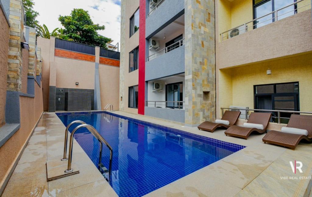 Disfruta de un moderno apartamento tipo estudio en una ubicación privilegiada a 8 minutos a pie del Centro de Convenciones de Kigali. Apartamento ubicado en el quinto piso de un edificio nuevo con acceso a piscina, gimnasio, restaurante y azotea con vistas de 360 grados a Kigali. Incluye aparcamiento gratuito y seguridad las 24 horas.